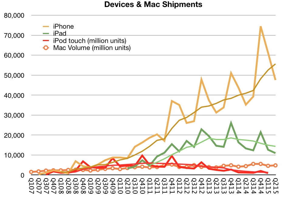 While we shouldn't make too much of the data, it certainly is the case that Apple iPhone sales are charging ahead as iPad sales decline. Some would argue that many consumers are prioritizing: an iPhone simply gets the first set of discretionary income when any new device gets considered.